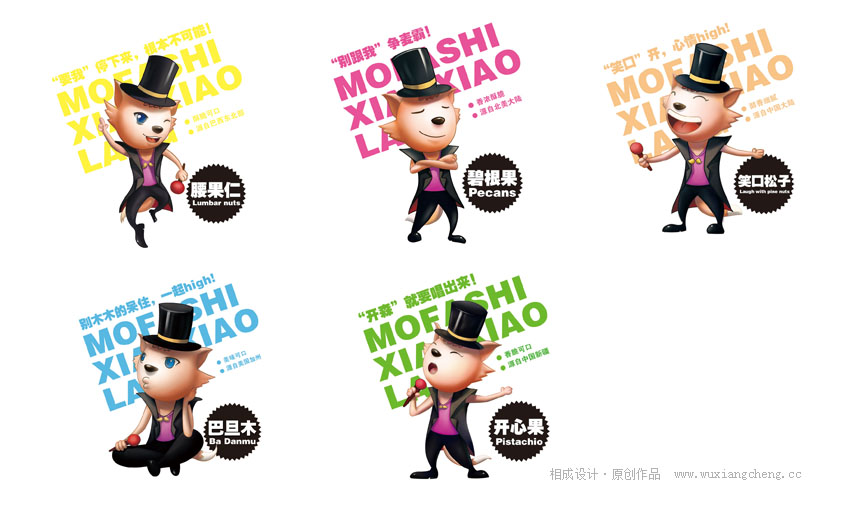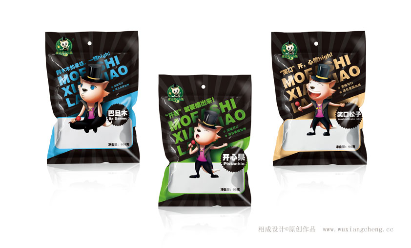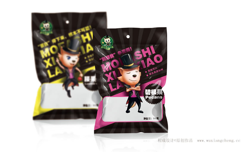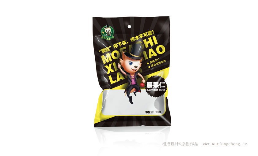 【相成原創(chuàng)設(shè)計分享】祝賀茗臣食品旗下小小狼魔法師新包裝升級上市!相成品牌設(shè)計一共為其整合設(shè)計五個系列,這只是其中的一個系列。設(shè)計的好壞就留給市場來驗證!大家也可以給出你們的寶貴意見,這是一個專門走夜場,ktv的一個休閑食品品牌,我們的設(shè)計定位是,這不僅僅是一款包裝設(shè)計,更是一款可以與消費者互動的食品包裝設(shè)計,在夜場,ktv,總有一批吃貨,也有一批麥霸,舞者,我們?nèi)绾瓮ㄟ^設(shè)計與他們進行互動呢?看圖說話!最后說句實在的:設(shè)計貴在原創(chuàng),如果你覺得這只是一個包裝袋,印刷廠可以免費幫您做,如果你把它當(dāng)做是提升您產(chǎn)品的載體增加您品牌的價值,那么相成原創(chuàng)設(shè)計可以幫到您!至真正在乎自己包裝設(shè)計的客戶 這是其中一個系列:堅果食品包裝設(shè)計系列。