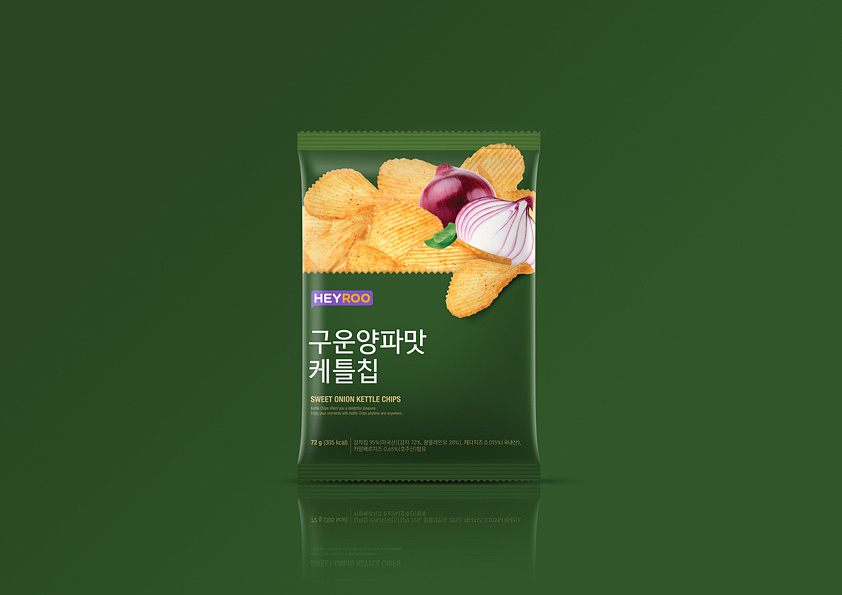 比如韓國的這款薯片包裝設計,獨特的色彩定位,穩(wěn)重的板式,在你還沒來的及去看品牌的商標你就知道這是heyroo的品牌產(chǎn)品。這就是包裝創(chuàng)意的記憶識別。吸引你的不僅僅是他的色彩,和板式,更多的是他的產(chǎn)品圖片,如此美味可口的食品,您看到不想吃嗎?這就是照片的魔力。